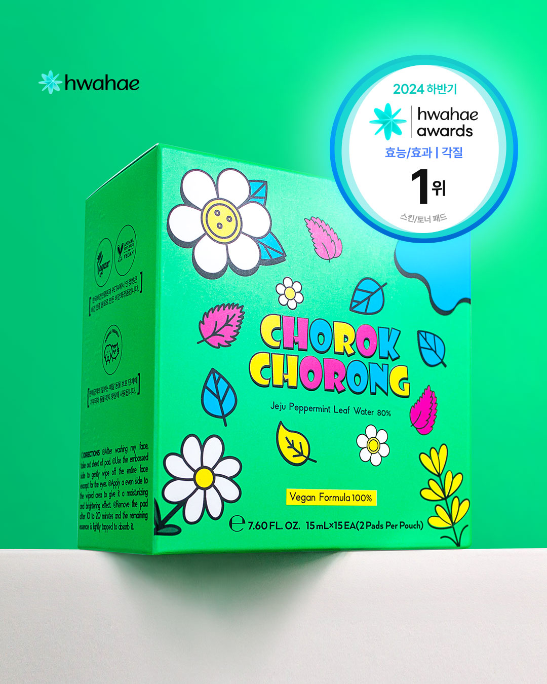Infused with 80% Jeju Peppermint Leaf Water, this vegan toner pad helps cool, calm, and clarify skin while gently removing dead skin cells and excess sebum.