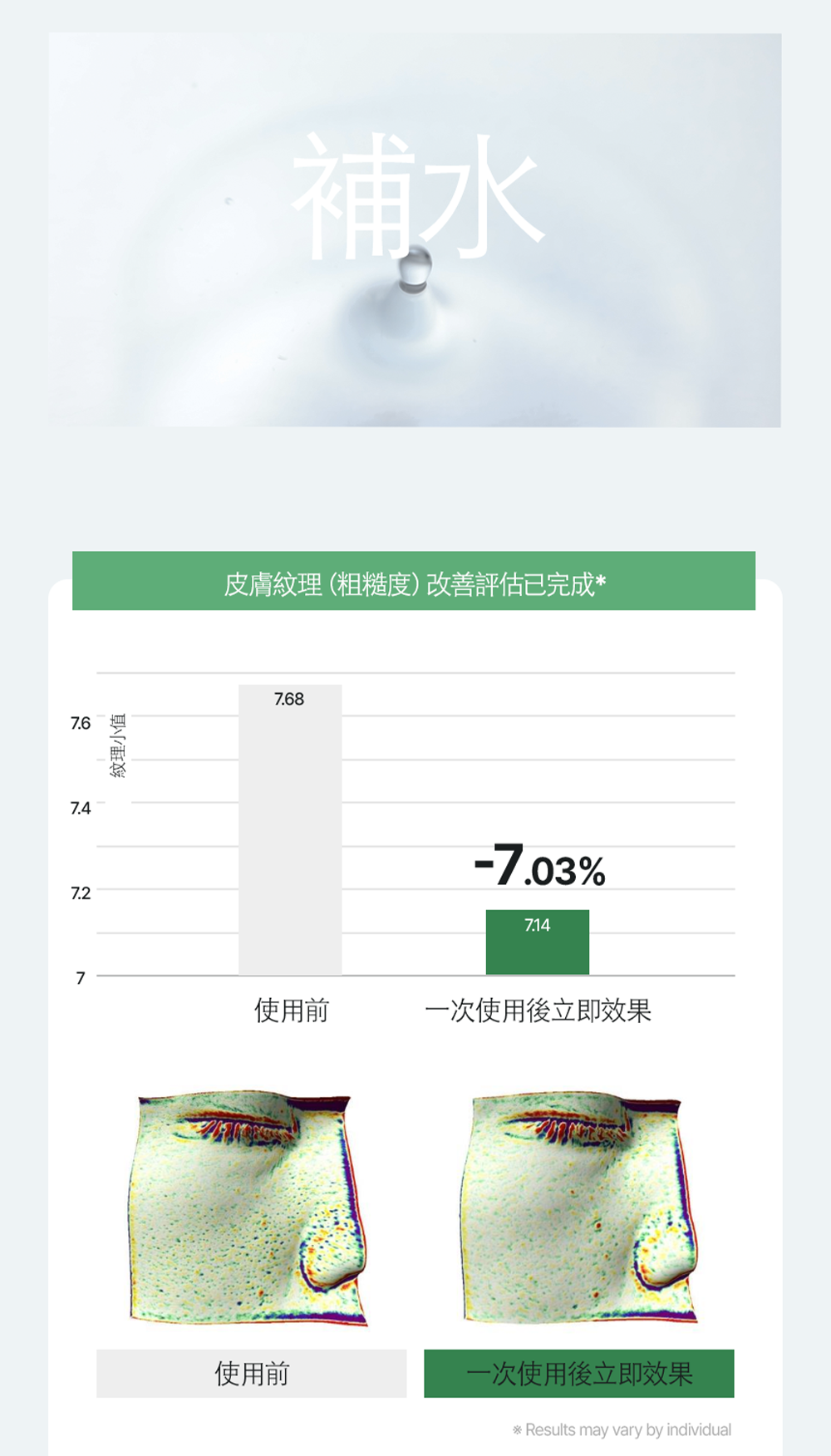 -含有 ABP(AHA+BHA+PHA)複合物的保濕爽膚水,可改善肌膚紋理,促進肌膚光滑亮麗。